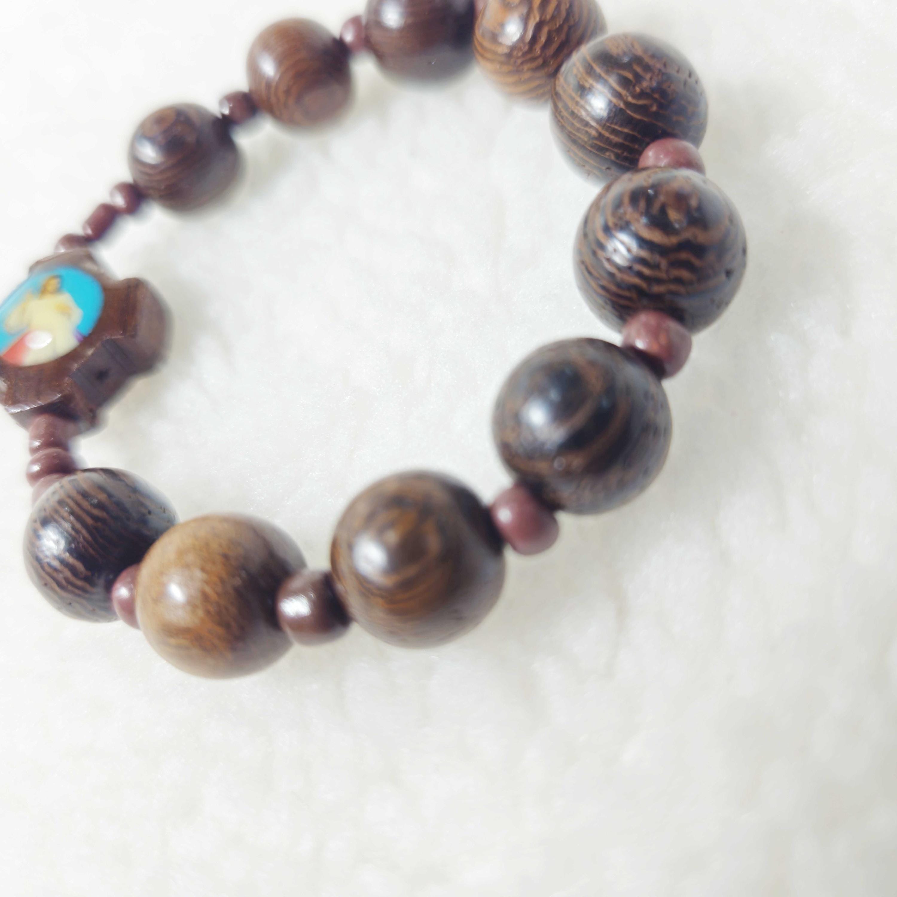 This handmade Catholic bracelet is crafted with black green cypress wood beads (10mm), perfect for prayer and devotion. The bracelet is ideal for children or teens with wrist circumferences approximately 12–13 cm (4.7–5.1 inches). A meaningful gift for daily prayer, religious milestones, birthdays, or Christmas. Each bracelet is carefully crafted to be a cherished keepsake, helping young believers grow in faith and devotion.