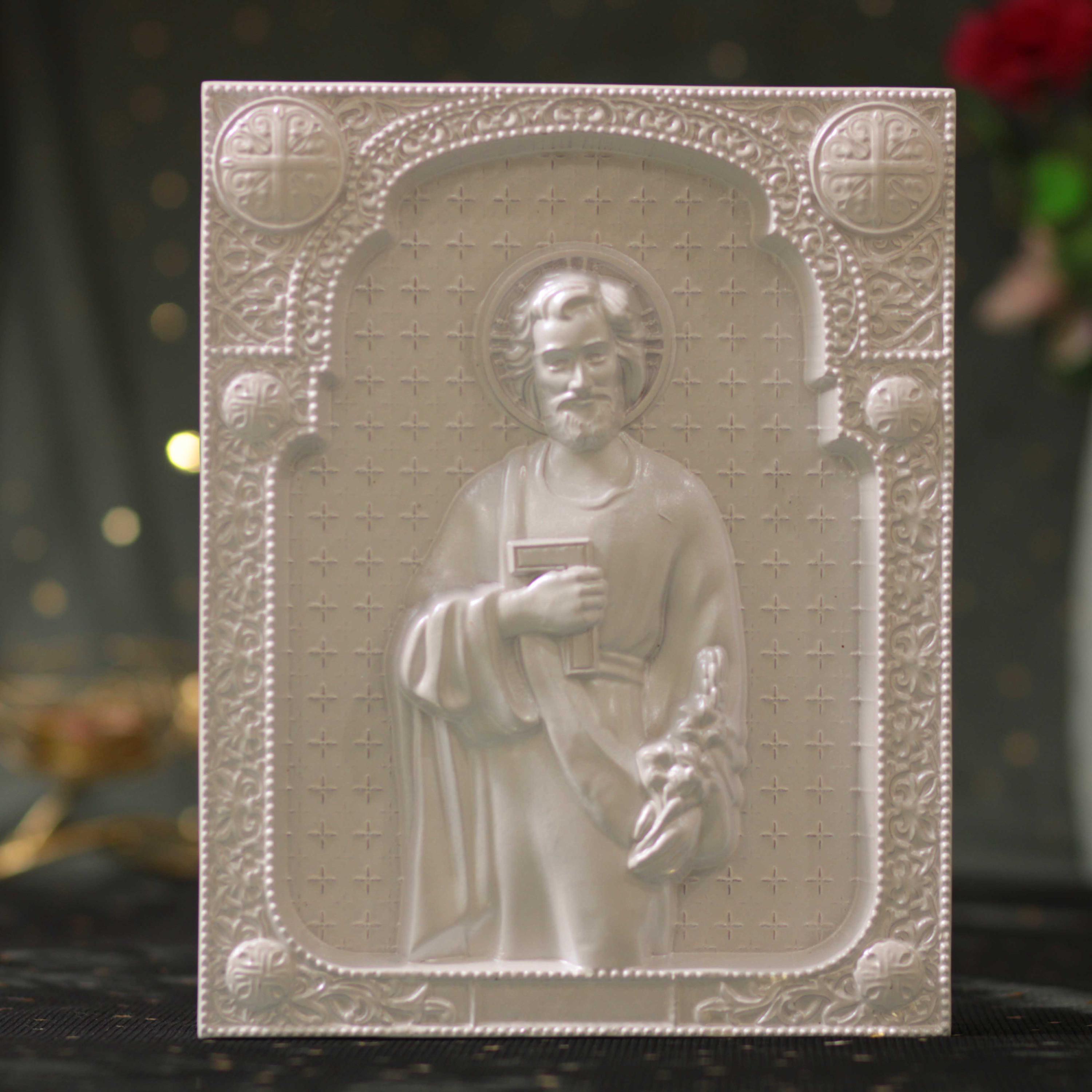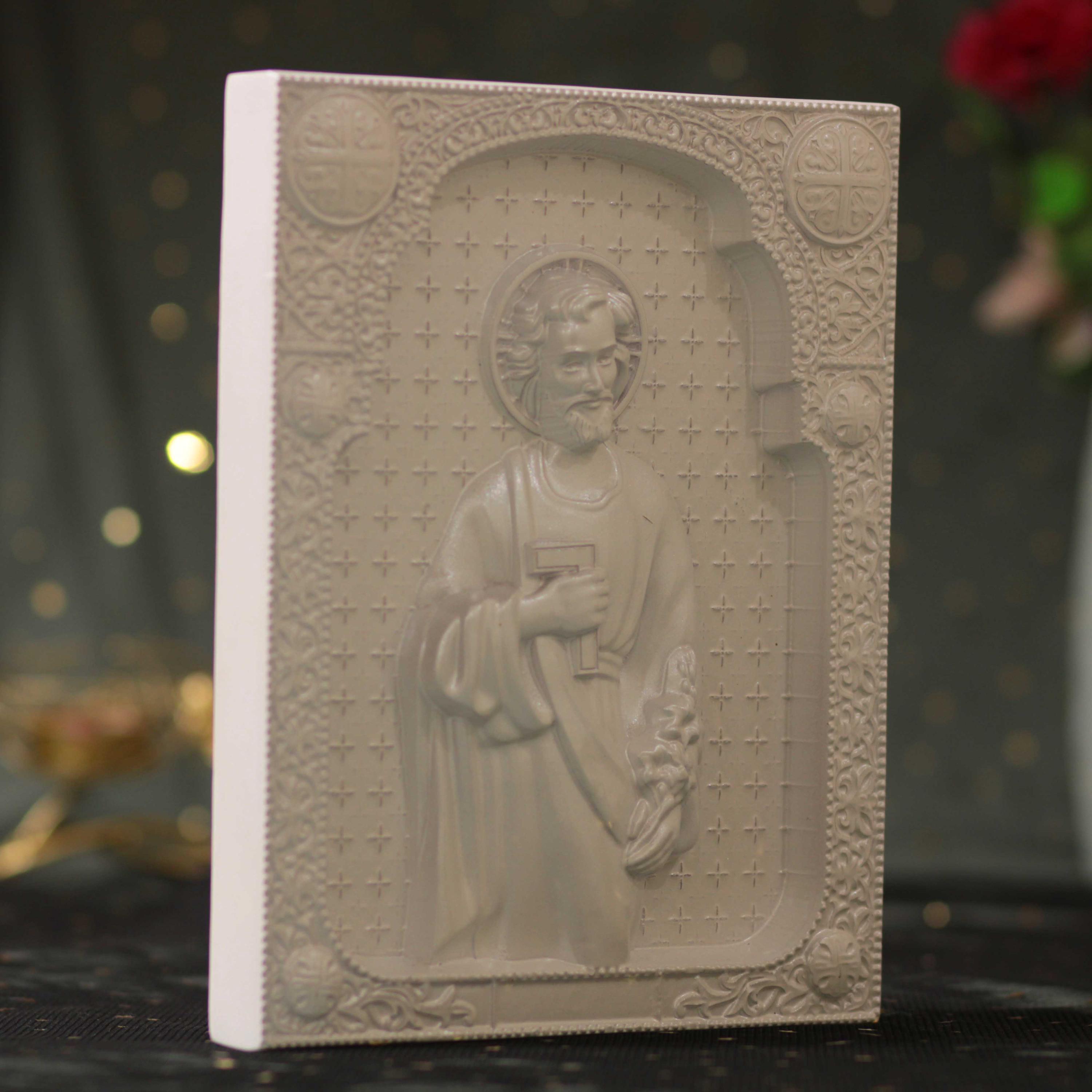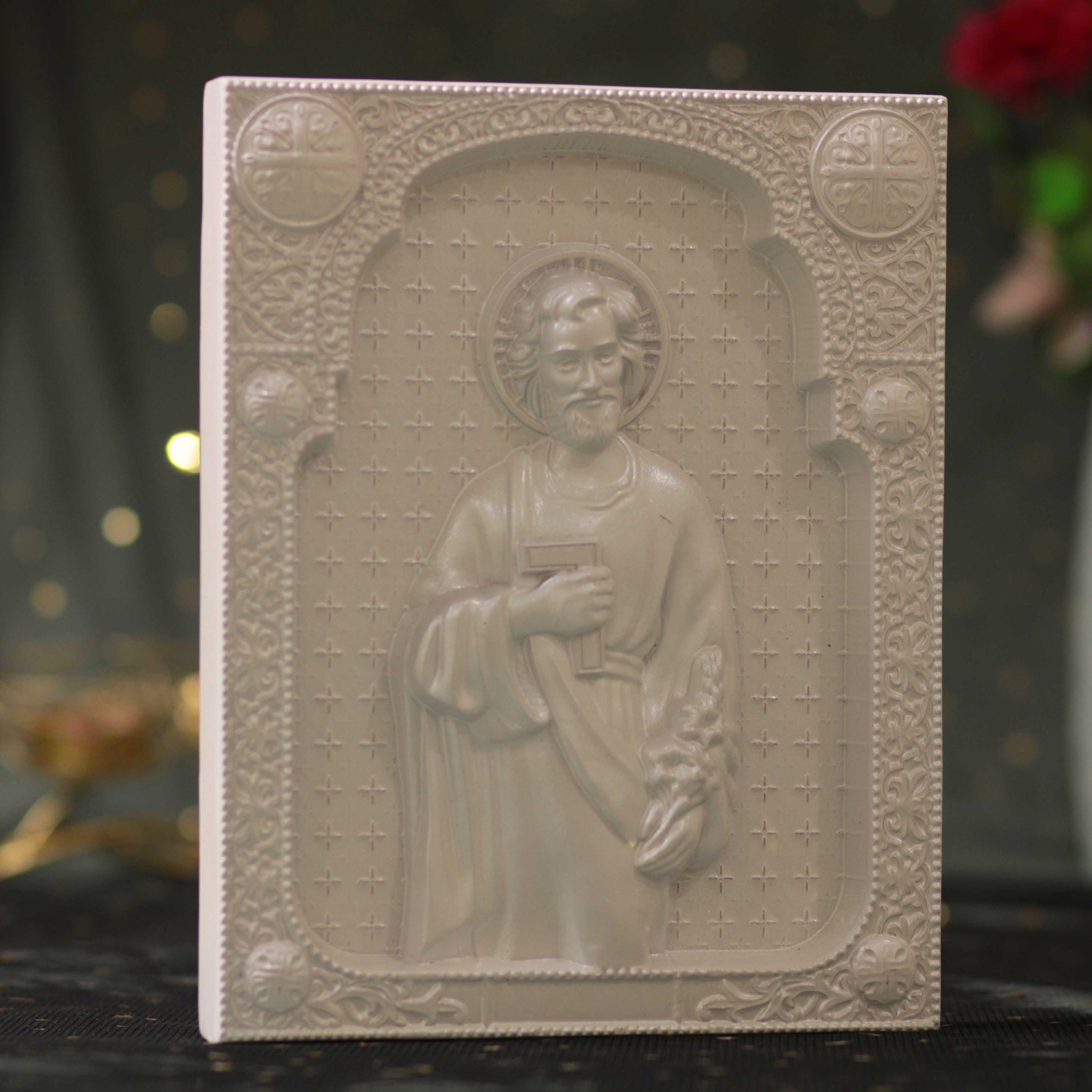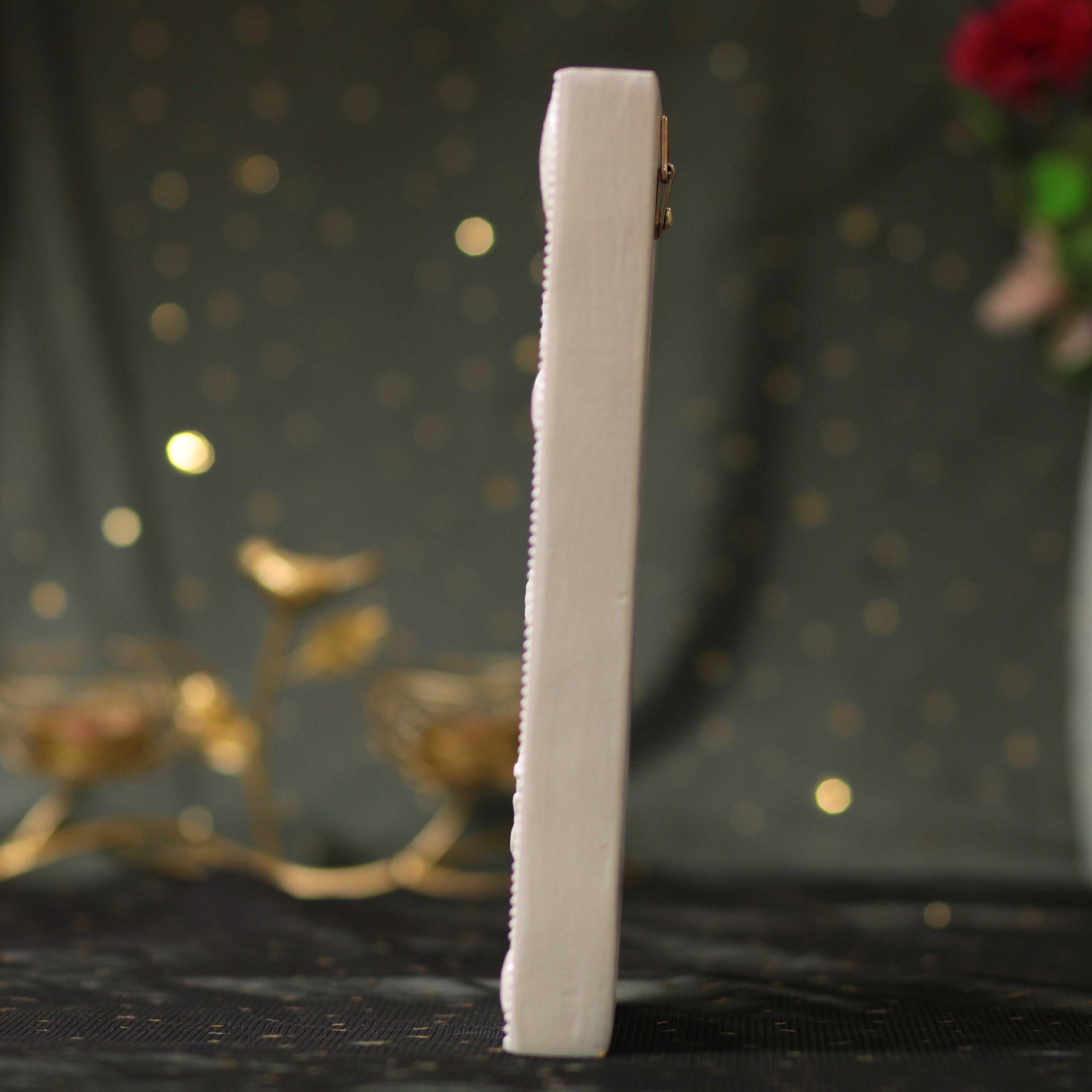 Carefully carved and finished by skilled artisans, this piece is designed to bring peace, prayer, and spiritual focus into your home, prayer corner, or parish space. The soft pearl white finish enhances the sacred details, making it suitable for both traditional and modern Christian interiors.