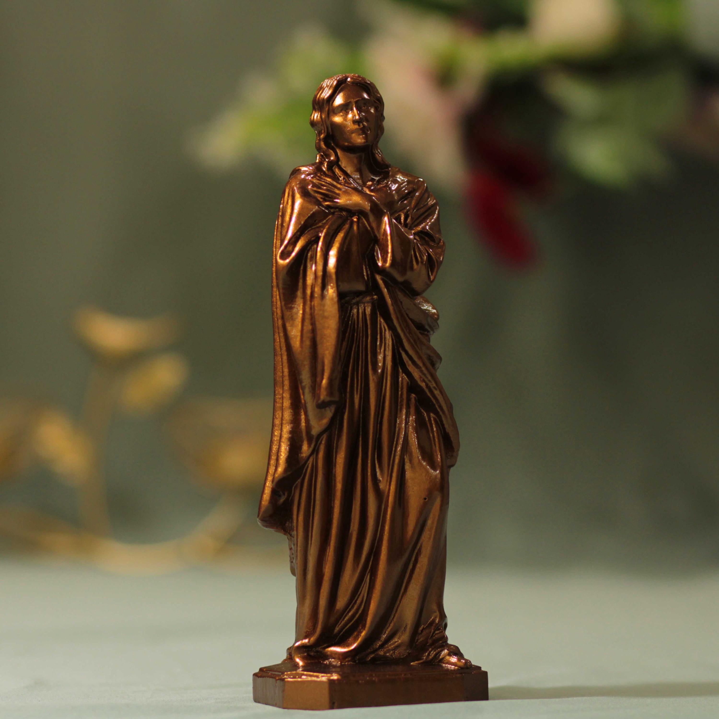 Carved from natural wood and finished in a timeless antique style, this statue is ideal for a home altar, prayer corner, church space, or devotional shelf. Each detail is thoughtfully shaped to evoke quiet contemplation and prayer, making it a meaningful addition to any Catholic home.