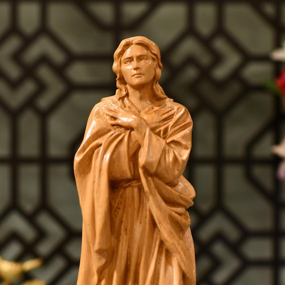 Saint Thérèse of Lisieux Wooden Statue Catholic Saint Teresa of the Child Jesus Carved Figurine Christian Gift Catholic Decor Little Flower